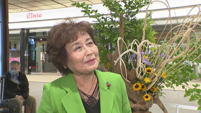 通りかかった外国人観光客らは、日本の文化「いけ花」を興味深げに写真を撮るなどして楽しんでいました。このいけ花は、5月15日まで展示されています。