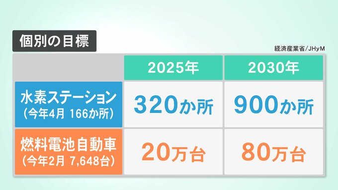 脱炭素に今後15年間で官民合わせて15兆円を投資するなどとなっています。また個別の目標として経済産業省のロードマップでは、水素ステーションは、2025年に320か所、2030年には900か所の設置を目標としています。燃料電池自動車は2025年に20万台、2030年には80万台を掲げています。