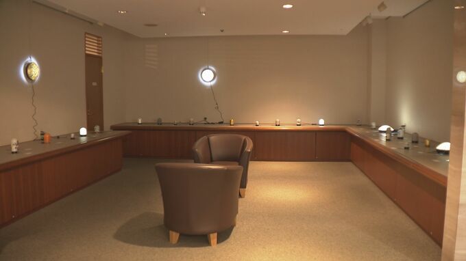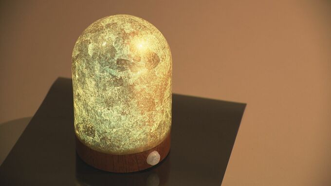 磁器を極限まで薄くすることで光を通しやすくした九谷焼のインテリア照明美術品の展示会が今、金沢で開かれています。