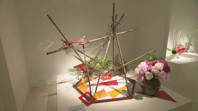 地元を代表する華道家たちが手がけた大作をはじめ、ヒマワリやシャクヤクなど季節の草花を使った力作が並びます。訪れた人たちは彩り豊かな花々と花器が織りなす美の世界に見入っていました。