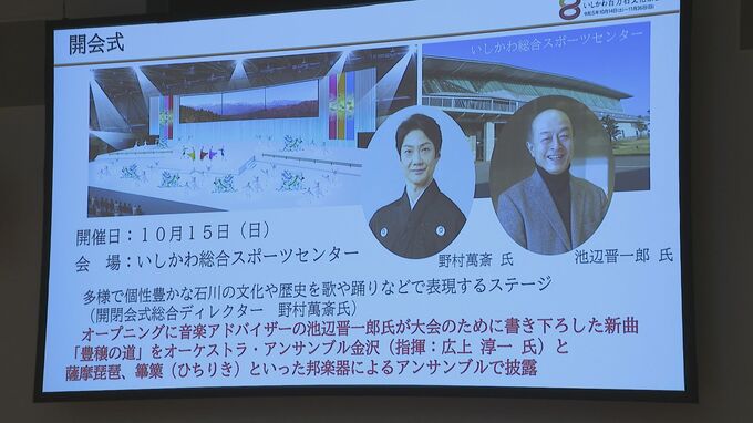 またいしかわ総合スポーツセンターで開催される開会式のオープニングでは、音楽アドバイザーの池辺普一郎さんの新曲「豊穣の道」がオーケストラ・アンサンブル金沢と、薩摩琵琶や篳篥といった邦楽器で披露されるということです。