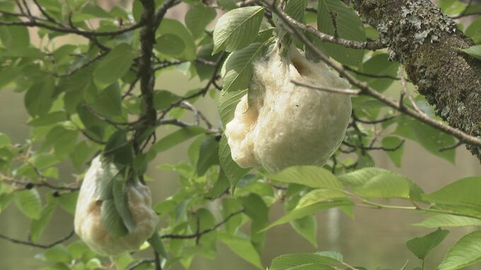 また池の周りの木々の枝には産卵の時期を迎えたモリアオガエルの卵も見られました。