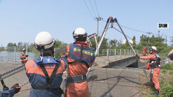 この訓練は去年8月、小松市を襲った豪雨で集落が孤立したことを教訓に、金沢市の駅西消防署と内灘町消防署が合同で実施しました。