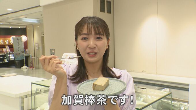 兵藤アナ試食:「うん!加賀棒茶です!香ばしいかおりが・・・。私加賀棒茶大好きなので、おいしい」