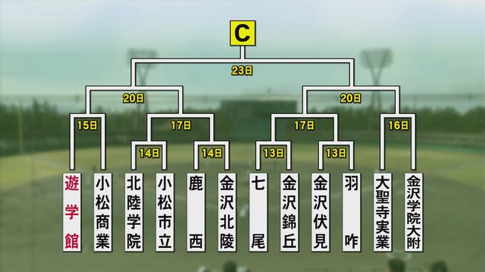 星稜の初戦は小松明峰 “夏の全国高校野球石川大会” 組み合わせ決定 2023年6月28日(水) 19:21 石川 強豪・遊学館は小松商業と対戦 Cゾーン、8年ぶりの甲子園出場を狙う遊学館は初戦で小松商業と対戦します。 Dゾーン、春の北信越覇者・航空石川は実力校の津幡を迎え撃ちます。 石川大会は来月11日に開幕し、日程が順調に進めば27日に決勝戦が行われます。