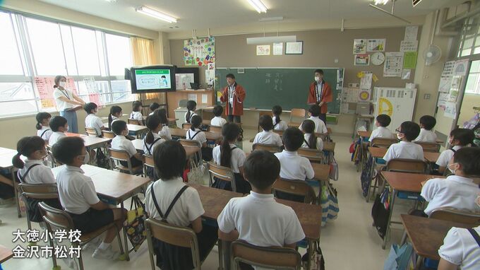 地産地消の観点から地元の伝統的な料理を知ってもらおうと、石川県佃煮調理食品協同組合の組合員5人が30日、大徳小学校4年生の教室を訪れました。