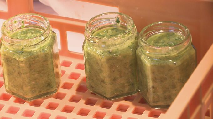 MRO 松村 玲郎 記者:「児童たちが自分たちで摘み取ったバジルを使って、それぞれの役割を決めてソースを作っています。みんな真剣な表情です」