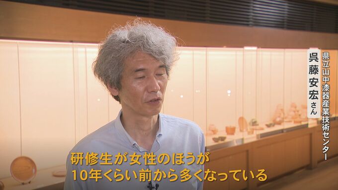 「10年くらい前から女性の方が研修生が多くなっている。今の若い人たちは漆器がおしゃれだと思う人も増えていて、デザインも女性らしいものが増えてきている」