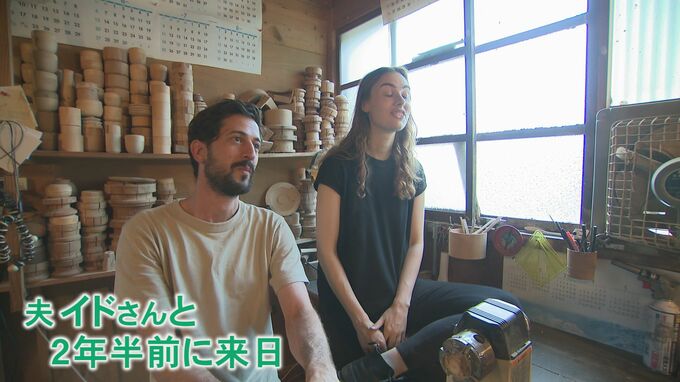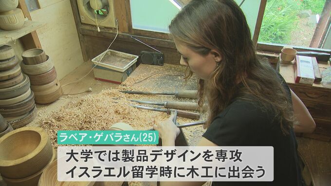 授業を終えたラベアさん。山中温泉の山あいにある、工房に案内してくれました。大学では製品のデザインを学んだラベアさんは、イスラエルに留学していた時に木工に出会いました。2年半前に東京の大学に留学が決まった夫・イドさんと共に来日。東京で出会った知人に教えてもらったのが、山中漆器の存在でした。