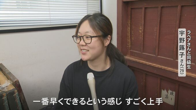 丁寧な作業ぶりと見事な腕前で先生からも一目置かれているのが、ドイツ出身のラベア・ゲバラさん(25)。この学校では唯一の、ヨーロッパ出身の研修生です。