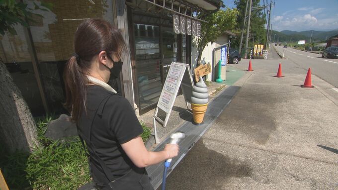 暑さでソフトクリームがあっという間に溶けてしまうため、逆さまにしてカップに入れて持ち帰る人も。