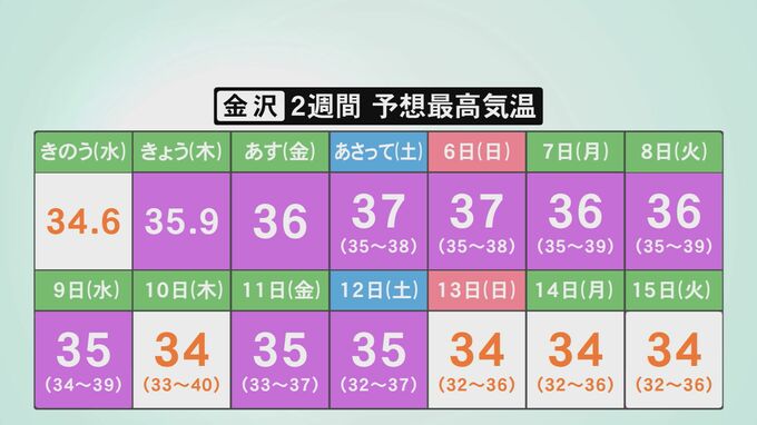 金沢の2週間先までの予想最高気温です。