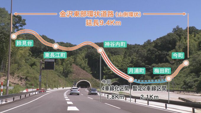 山側環状の一部、金沢東部環状道路は金沢市今町から鈴見台までの延長9.4キロの道路で2006年に2車線で全線開通して以来順次、4車線化に向けて工事が進められてきました。