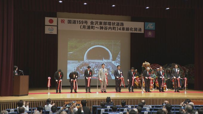 開通式では地元の加賀獅子舞が披露されたあと関係者がテープカットをして開通を祝いました。