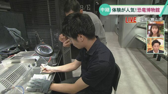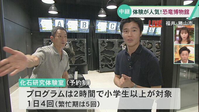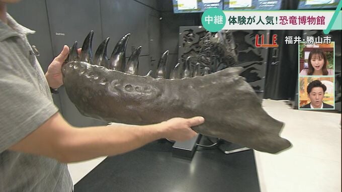 7先月のリニューアルオープン後、ひと月の来館者が20万人を超える人気スポット福井県立恐竜博物館から中継です。館内には新たに体験メニューも設けられました。現場から牛田和希アナウンサーに伝えてもらいます。