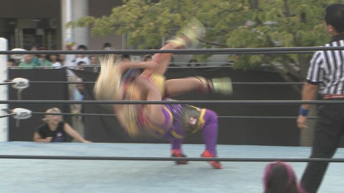 特設リングでは女子プロレスの試合も開かれ、人気レスラーのアジャコングさんらが会場を沸かせました。