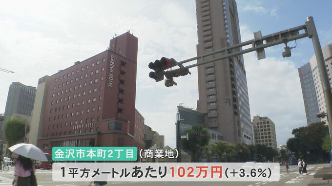 JR金沢駅近くの金沢市本町2丁目は1平方メートルあたり102万円。去年と比べて3.6%上昇し、県内の最高価格地点となりました。また北信越5県の中でも最も高く、11年連続でトップの座をキープしています。