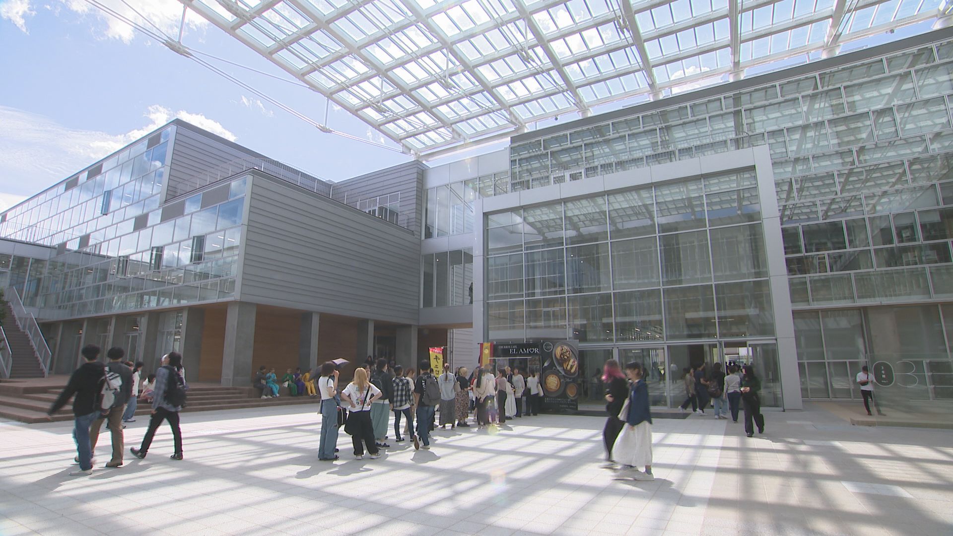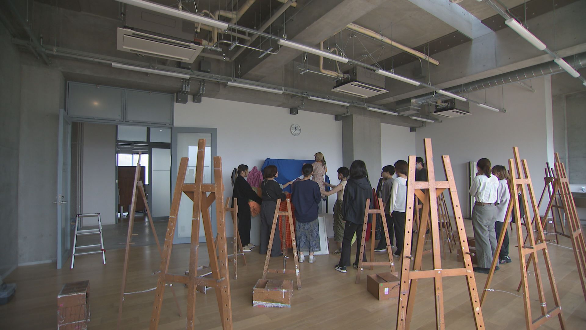 MRO 松村 玲郎 記者:「大きな窓ガラスで明かりが取り入れられるようになっています。2年生の油画専攻の皆さんの授業、新しいキャンパスということで活気があります。ワクワクしながら授業に取り組んでいるという感じです」