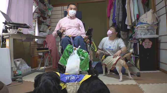 仕事中の事故で首の骨を折り、両手足にまひが残りました。平野さんの日常生活をサポートしているのが、ラブラドールレトリバーの介助犬ピースケです。