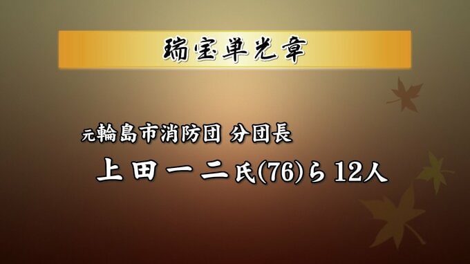 瑞宝単光章には、輪島市消防団の元分団長、上田一二さんら12人が選ばれました。