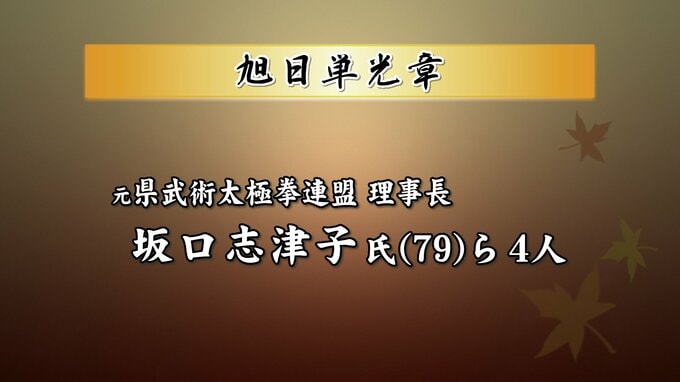 旭日単光章には、県武術太極拳連盟の元理事長坂口志津子さんら4人が選ばれました。