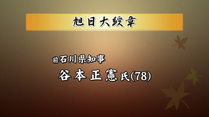 このうち、県内在住者としては14年ぶりの受章となる旭日大綬章には、前の石川県知事、谷本正憲さんが選ばれました。