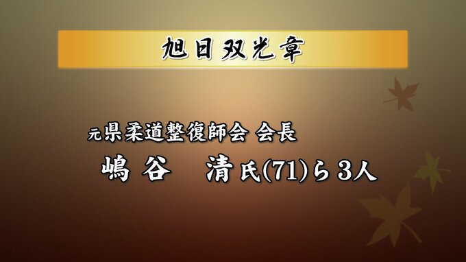旭日双光章は、県柔道整復師会の元会長嶋谷清さんら3人。