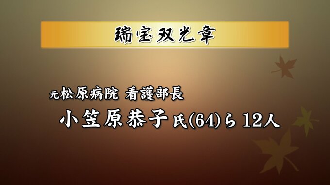 瑞宝双光章には、長年、看護の道を歩んだ小笠原恭子さんら12人。