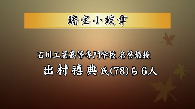 瑞宝小綬章には、石川工業高等専門学校名誉教授の出村禧典さんら6人。