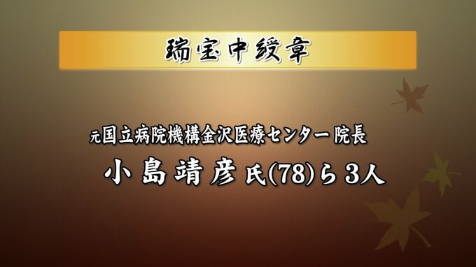 また、瑞宝中綬章には国立病院機構金沢医療センターの元院長小島靖彦さんら3人。