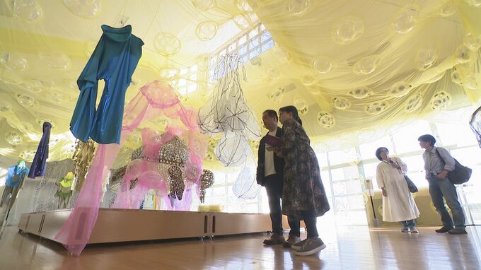 3回目を迎えた今年の奥能登国際芸術祭には、14の国と地域から59組のアーティストが参加し、61の作品が展示されています。地震の被害が特に集中した珠洲市正院町の旧飯塚保育所に展示された「コスチューム×身体×スズズカ」では、祝日ということもあって多くの人が鑑賞に訪れていました。