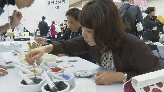 会場にはPRするブースが設けられたほか、伝統工芸などを体験できるコーナーでは、参加者が化石の発掘や九谷焼の絵付けを楽しんでいました。