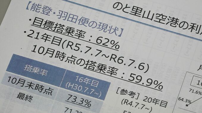 羽田と石川県能登を結ぶ開港21年目の「のと里山空港」。ことし10月末時点で搭乗率が過去最低の59.9パーセントと伸び悩んでいます。