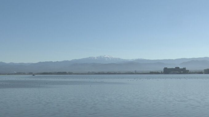 青空が広がった22日の石川県内。加賀市の柴山潟からは雪化粧した白山が楽しめました。