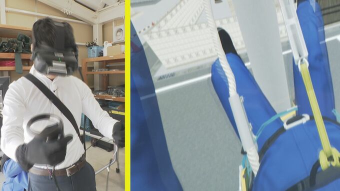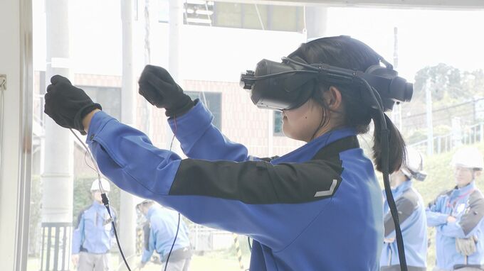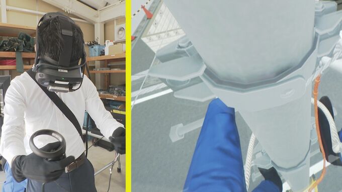VR=仮想現実を活用した体験。高さ約7メートルの電柱で作業を進めると…