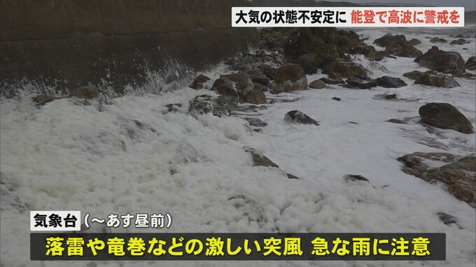 気象台では30日昼前にかけて落雷や竜巻などの激しい突風、急な雨に注意を、能登では夜のはじめ頃にかけて高波に警戒するよう呼びかけています。