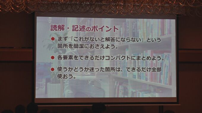 説明会では塾の講師が、受験する高校を決めるうえで重要になる統一テストや総合テスト対策のほか、高校入試に関する最新情報を伝え、これからの時期に必要な勉強法など日常の心構えをアドバイスしました。