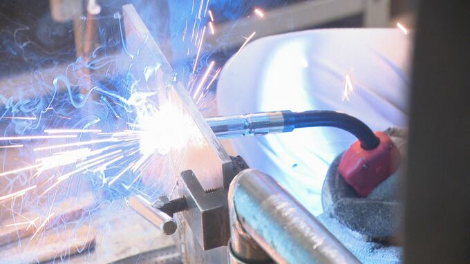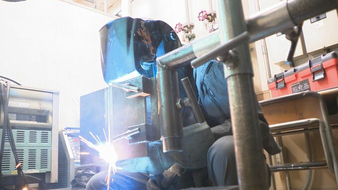 MRO 松村 玲郎 記者 「辺りに火花も飛び散るなか、高校生たち金属板を立てて溶接する課題に取り組んでいます」