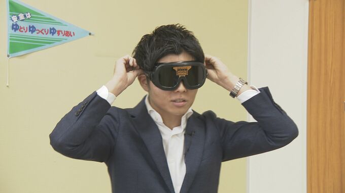 「このゴーグルと着けると酒に酔った時の視界を体験することができます。目の前が歪んで平衡感覚がなくなりますね。」