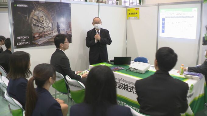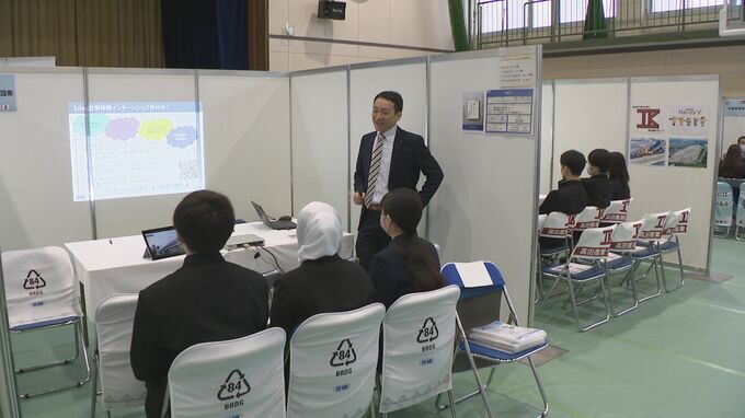 コロナ禍でのオンライン開催を経て、4年ぶりに対面で開かれた説明会には、コンサルティング業や建設業、通信業など131の企業と、学生450人が参加しました。