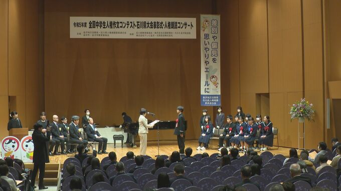石川県内の中学生を対象に、人権や差別をテーマにした作文コンテストの表彰式が20日、金沢で開かれました。