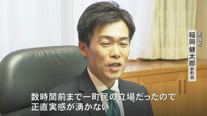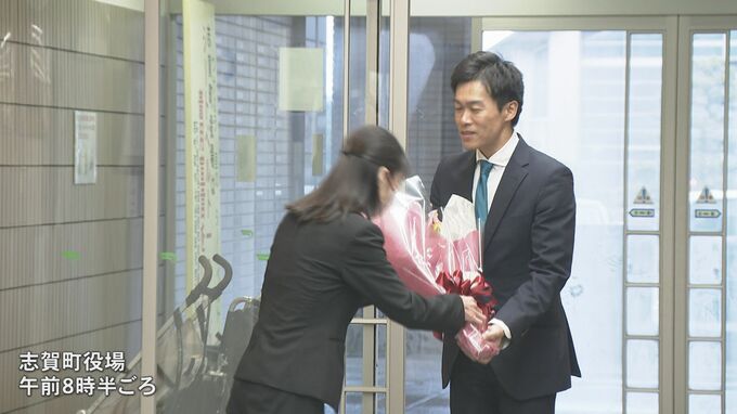 当選から一夜明けた、午前8時半ごろ。稲岡新町長は志賀町役場に初登庁し、職員らの出迎えを受けました。町長室で、初めて町長のイスに座ると…。