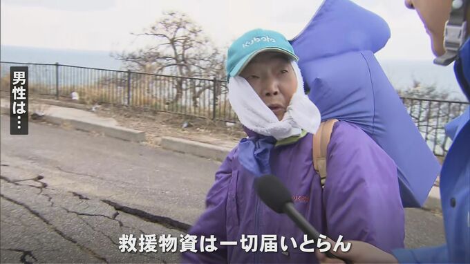 男性が地震後も生活を続けているのは、この場所から西におよそ6・5キロ離れた輪島市の下山町。道路が寸断されたことで孤立状態となり、物資が行き届いている光浦町まで自力で歩いて来たというのです。