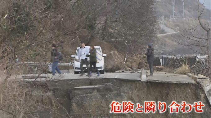アスファルトが完全に崩れ落ちた道路を、何とか渡ろうとする住民たち。孤立集落の住民たちは窮地を乗り越えるべく危険と隣り合わせの生活を強いられていて、被災地では物資をいかに効率的に分配させるかが引き続き課題となっています。