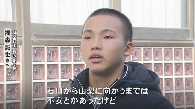 1月18日午後、山梨県の日本航空高校に到着したのは、七尾市出身で航空石川の野球部2年生の福森誠也さんです。