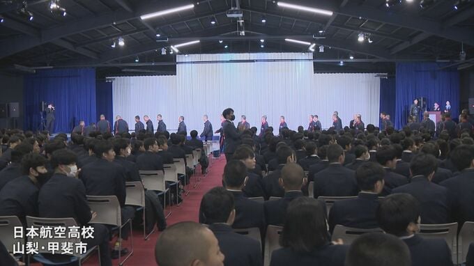 能登半島地震で被災した、日本航空高校石川の生徒を受け入れる山梨県の日本航空高校で1月22日、石川の生徒を歓迎するセレモニーが開かれました。