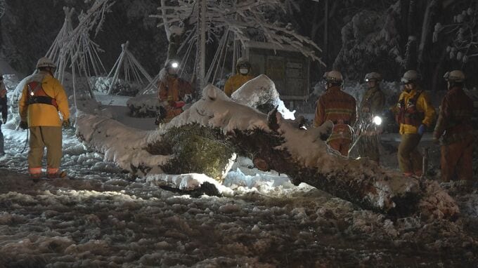 また、1月23日午後9時半ごろ、金沢市出羽町の本多の森公園のモミの木の幹が折れ道路を塞ぎました。