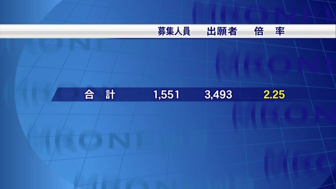 全体では1551人の募集に対し3493人が出願しています。倍率は2.25倍です。