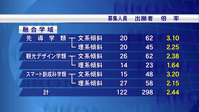 令和6年度の金沢大学一般入試 志願倍率は3.04倍 学域別の倍率は… 2024年2月7日(水) 15:25 石川 融合学域 融合学域 122人の募集に対し298人が出願しています。倍率は2.44倍です。
