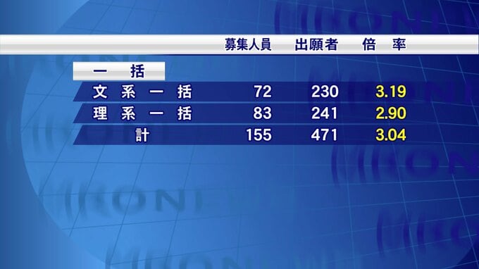 155人の募集に対し471人が出願しています。倍率は3.04倍です。